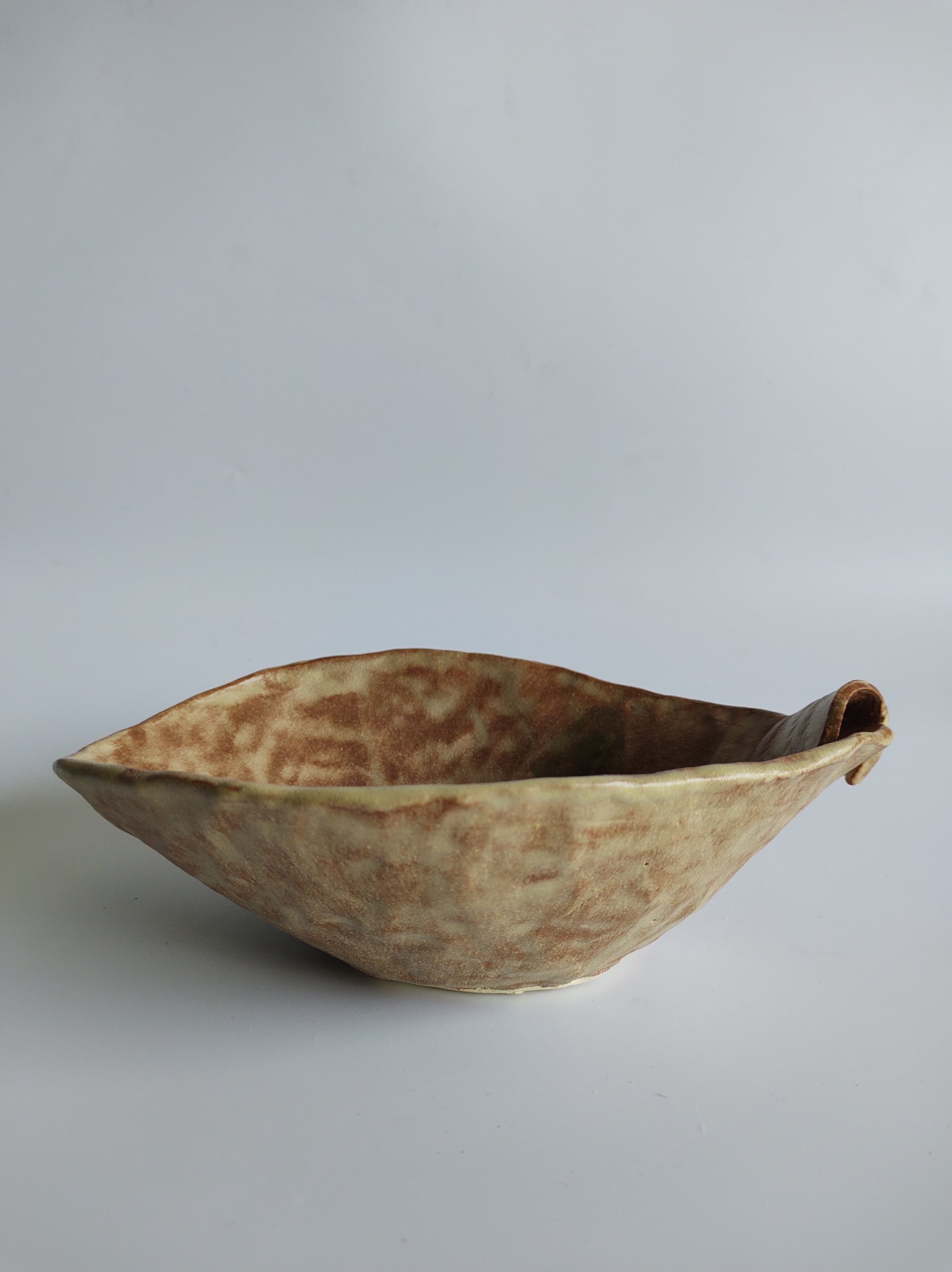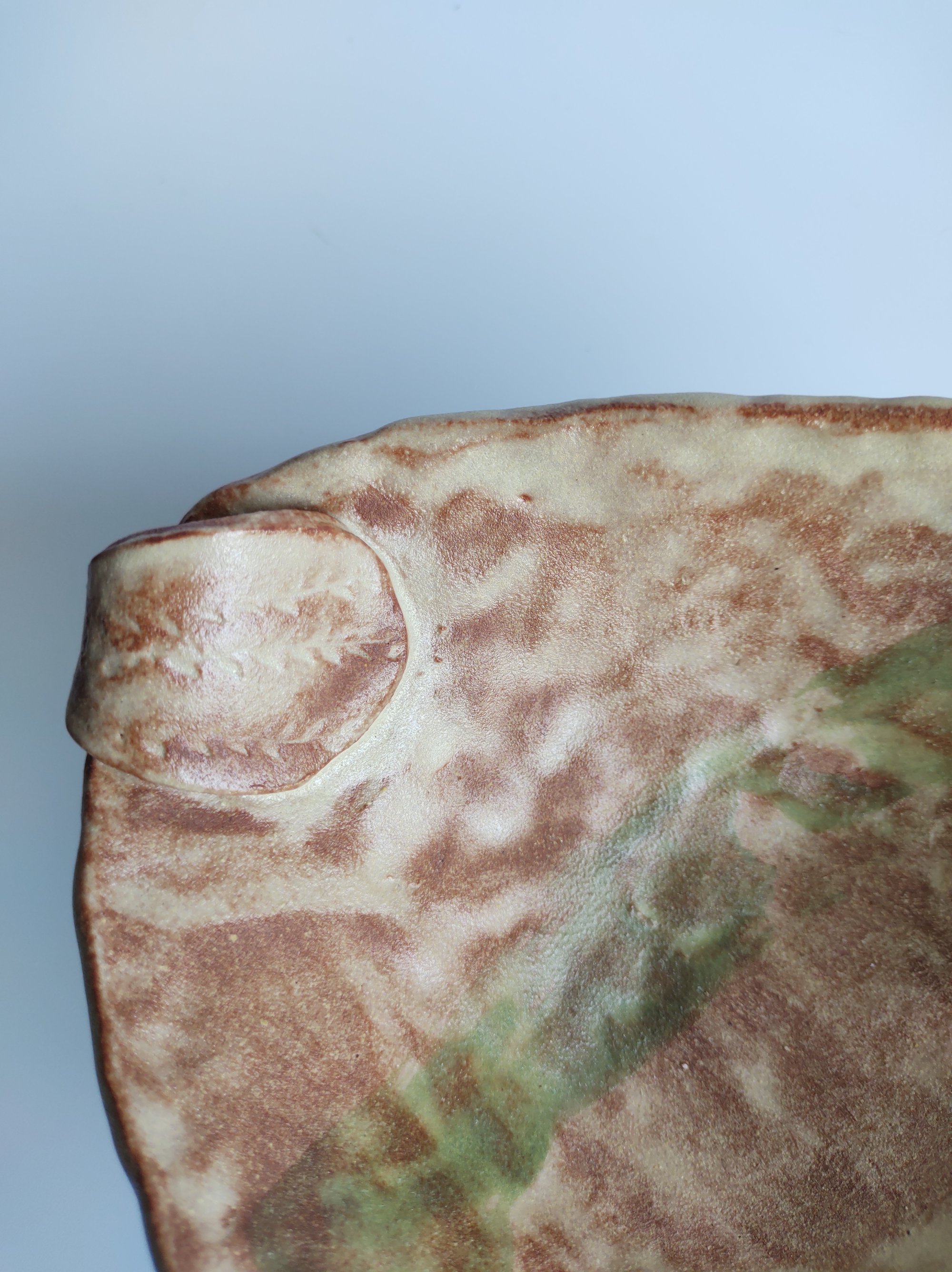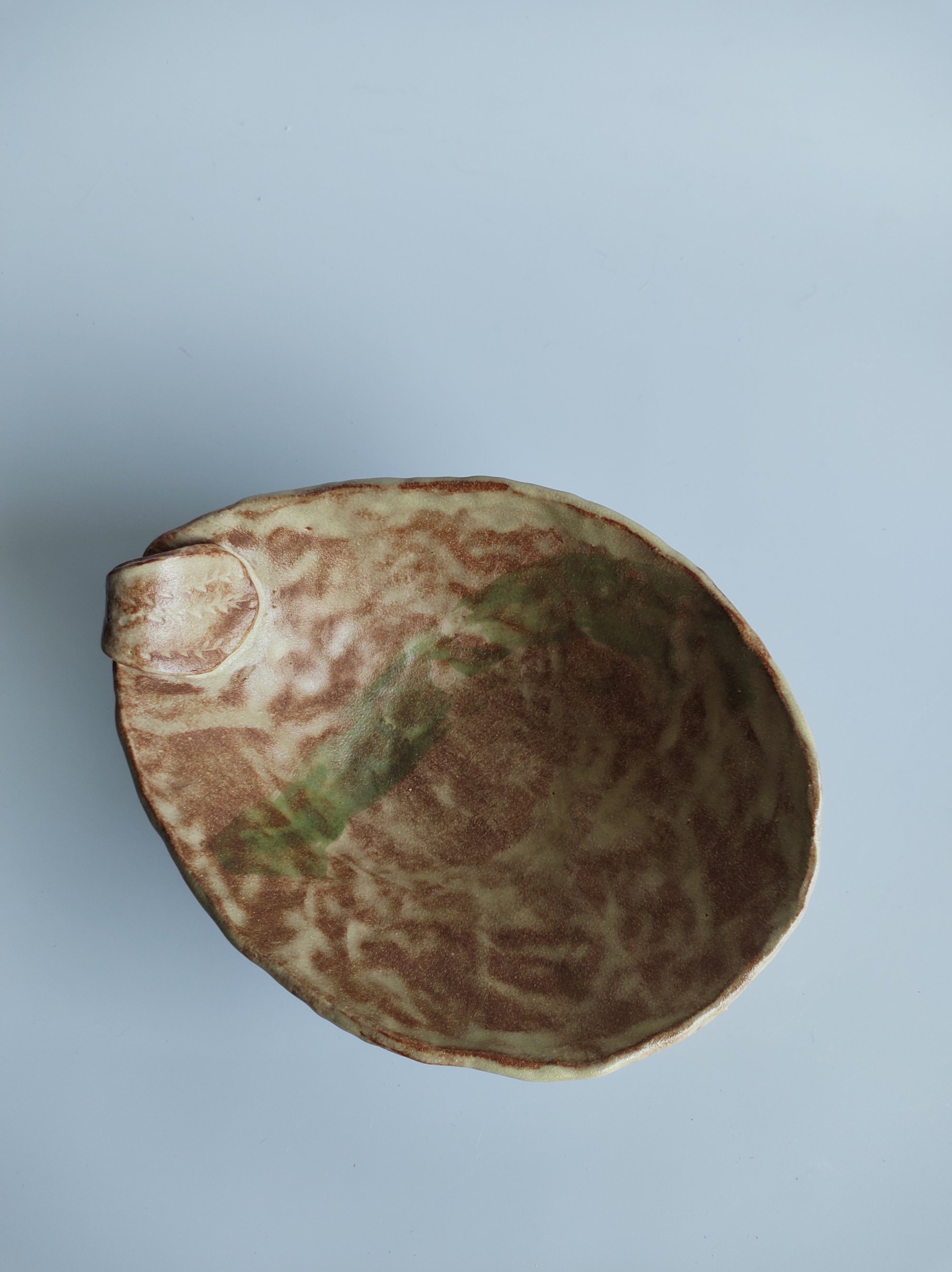 Slab built and pinched in Raku clay. Matte Shino glaze.
