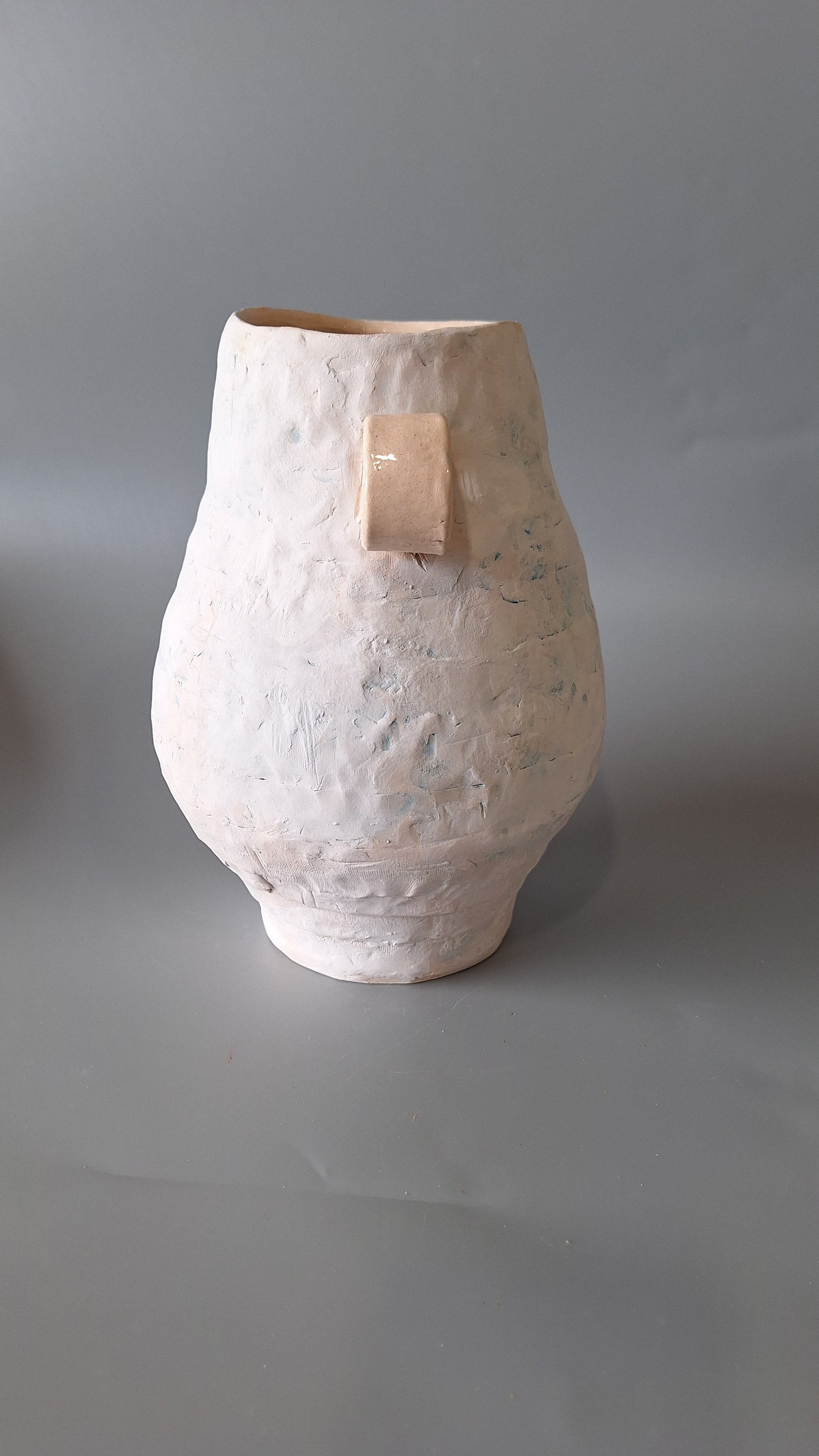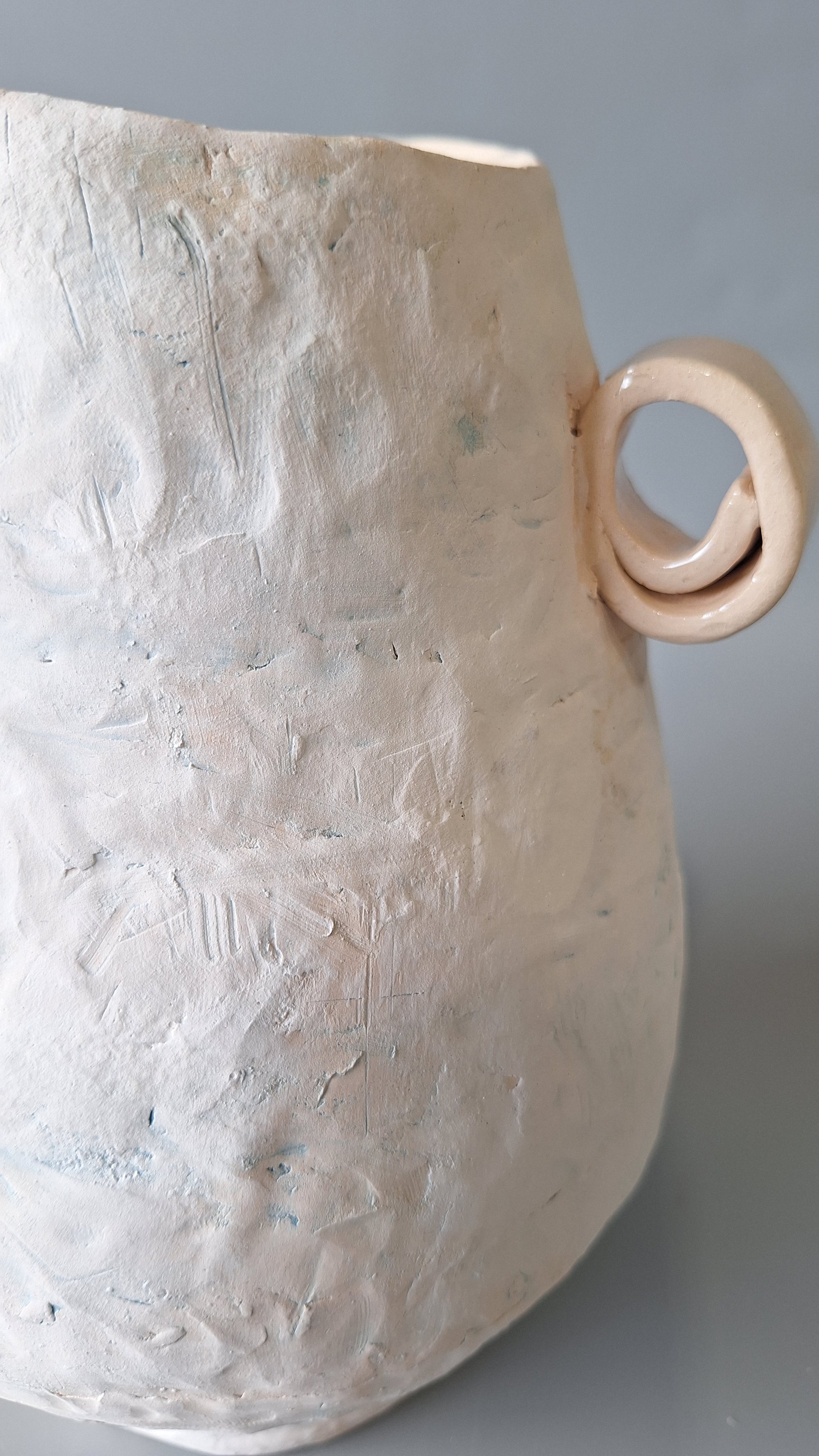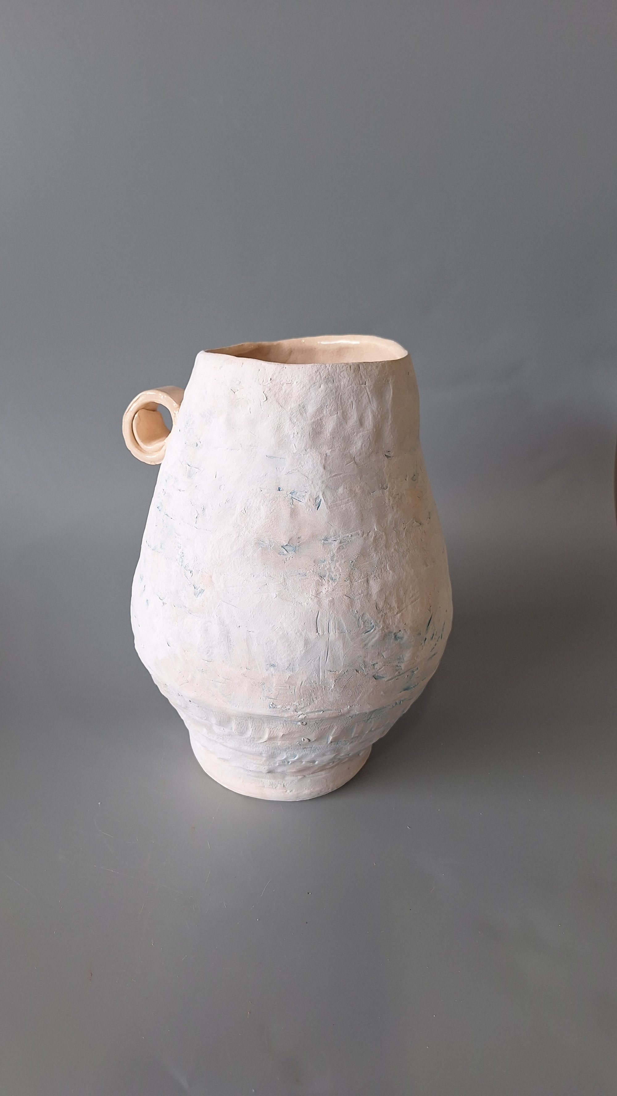 Breeze, sculptural hand built vessel with coil technique, white clay and underglazes. glazed inside. Can hold water. One of a kind.