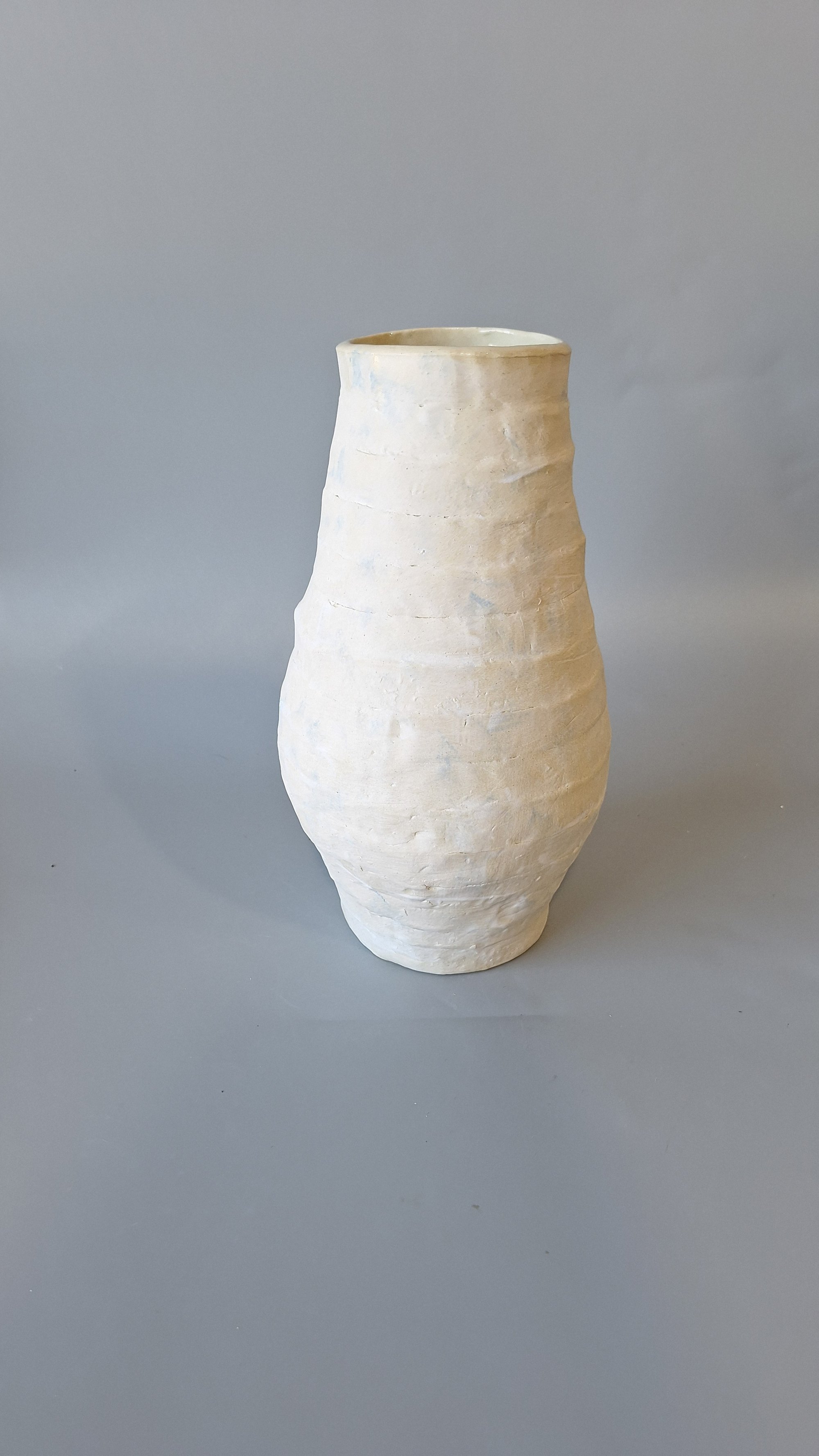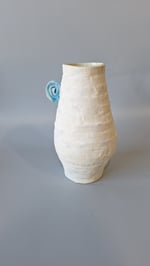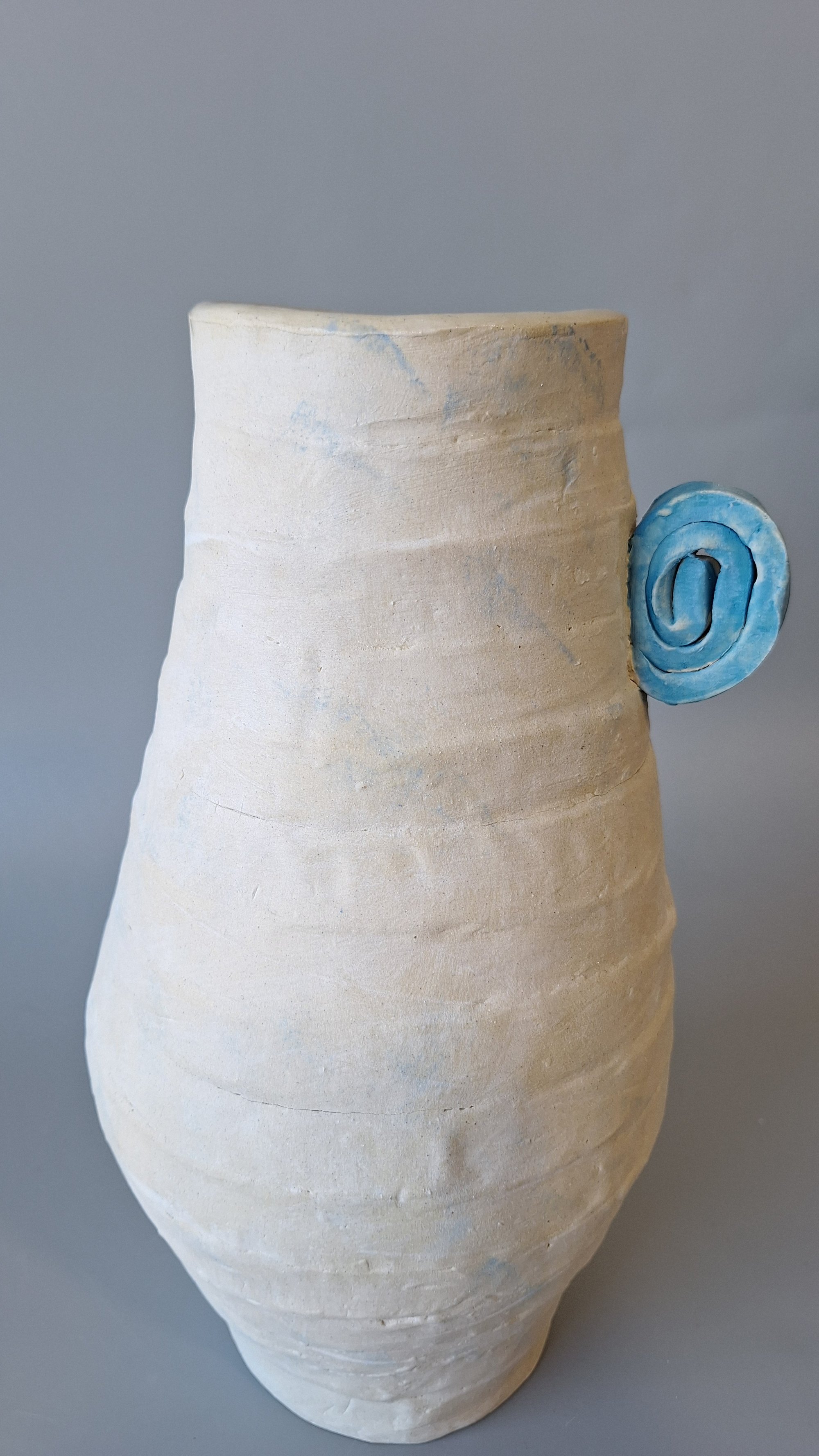 Tall hand built, pinched pottery vessel. Can hold water, decorative and functional. Contemporary Ceramic with Ancient twist from the series Ocean blue. 11" h x 6"